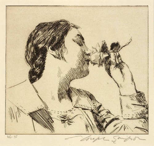 Print on left: Joseph Simpson, A Rose, 1926, Blanton Museum of Art, Transfer from the Humanities Research Center, The University of Texas at Austin